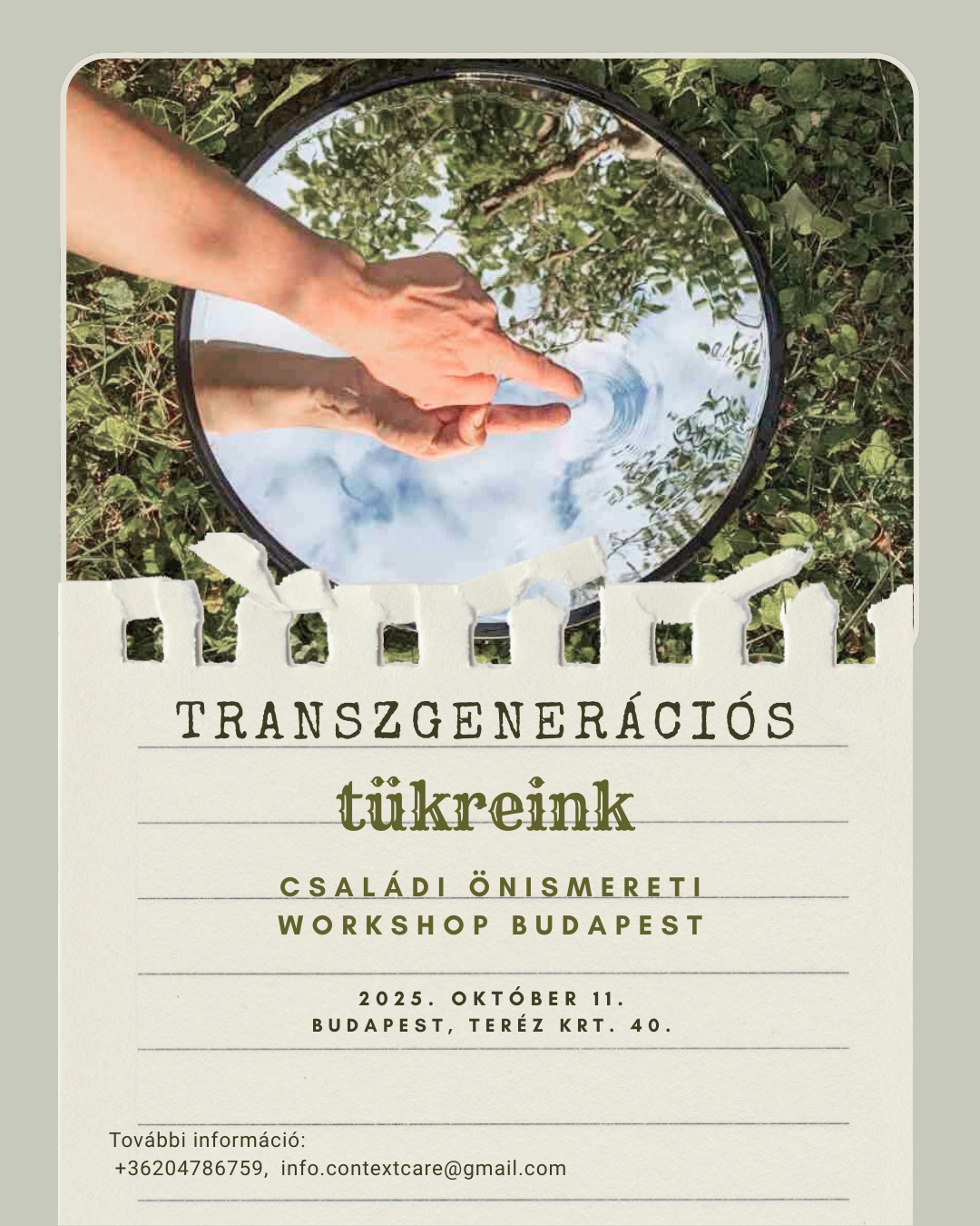 Jelentkezés, további információ: +36 20 478 6759, info.contextcare@gmail.com, vagy messengeren a szervezőknél.